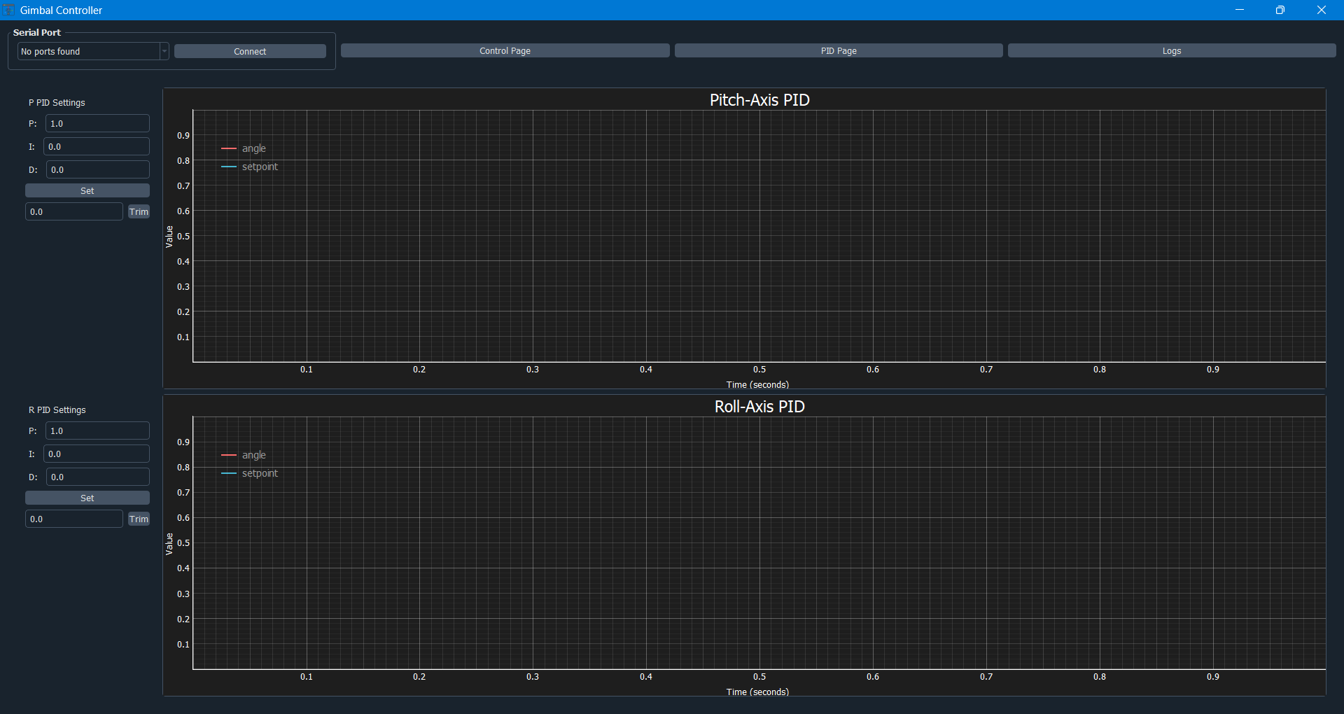 I got tired of not being able to see what the gimbal was doing in real time. A serial terminal wasn’t going to cut it for tuning PIDs. So I wrote a desktop app in PyQt5.